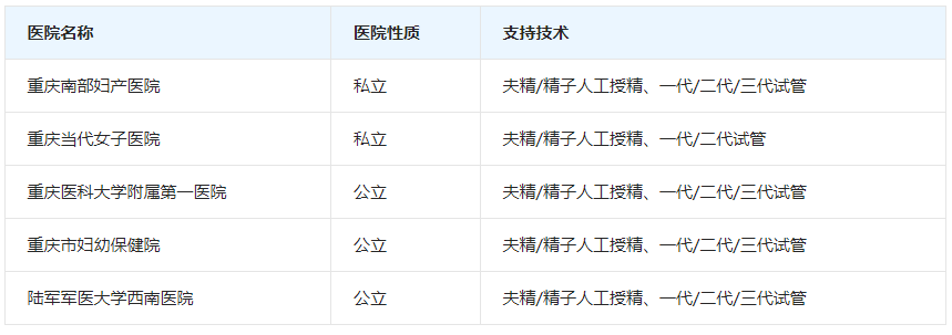 4.重庆市妇幼保健院:重庆市妇幼保健院是一家集医疗、保健、科研、教学为一体的三级甲等妇幼保健院,其生殖医学中心是重庆市重点专科。该中心拥有先进的医疗设备和专业的医疗团队,能够开展夫精/精子人工授精、一代/二代/三代试管婴儿技术。该院在女性不孕症、男性不育症、复发性流产等疾病的诊治方面具有丰富的经验。该院还注重科研创新,不断引进和应用新的辅助生殖技术。