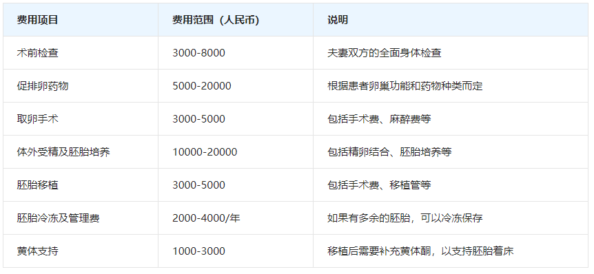 试管婴儿费用构成