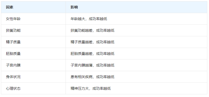 三代试管婴儿的成功率受到多种因素的影响,主要包括: