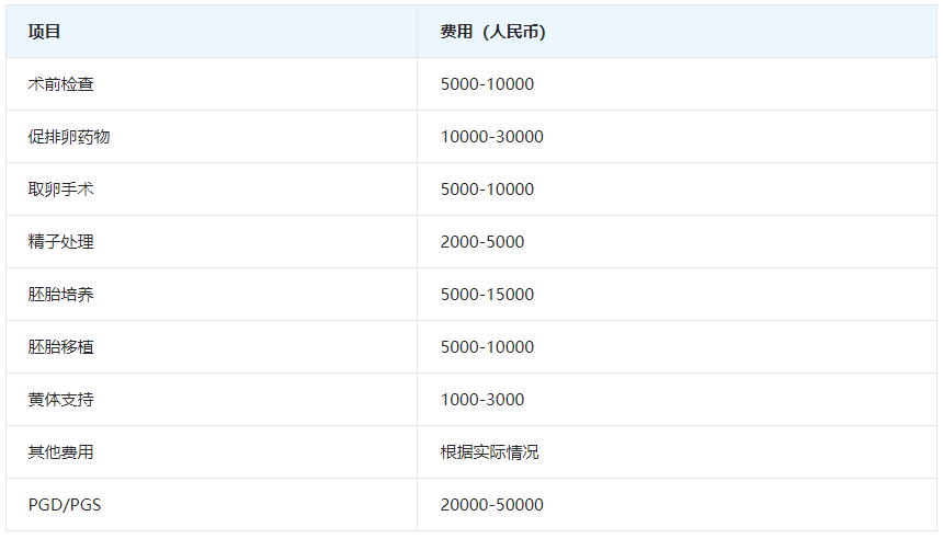 其他费用:如冷冻胚胎的冷冻费、管理费,以及一些额外的检查费用等。